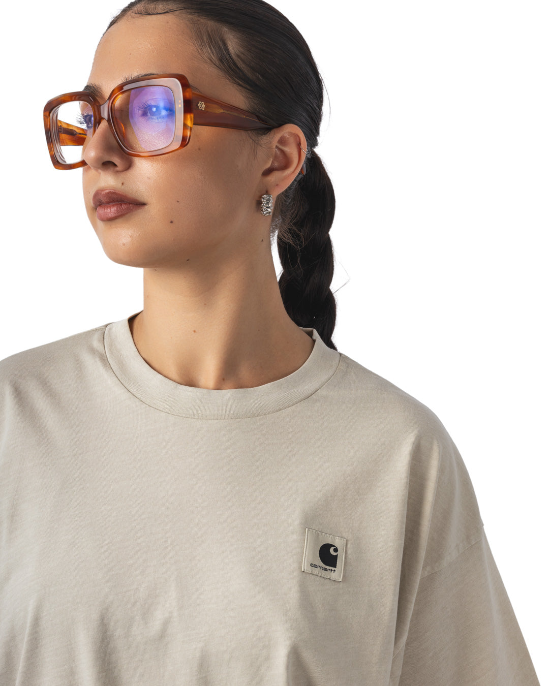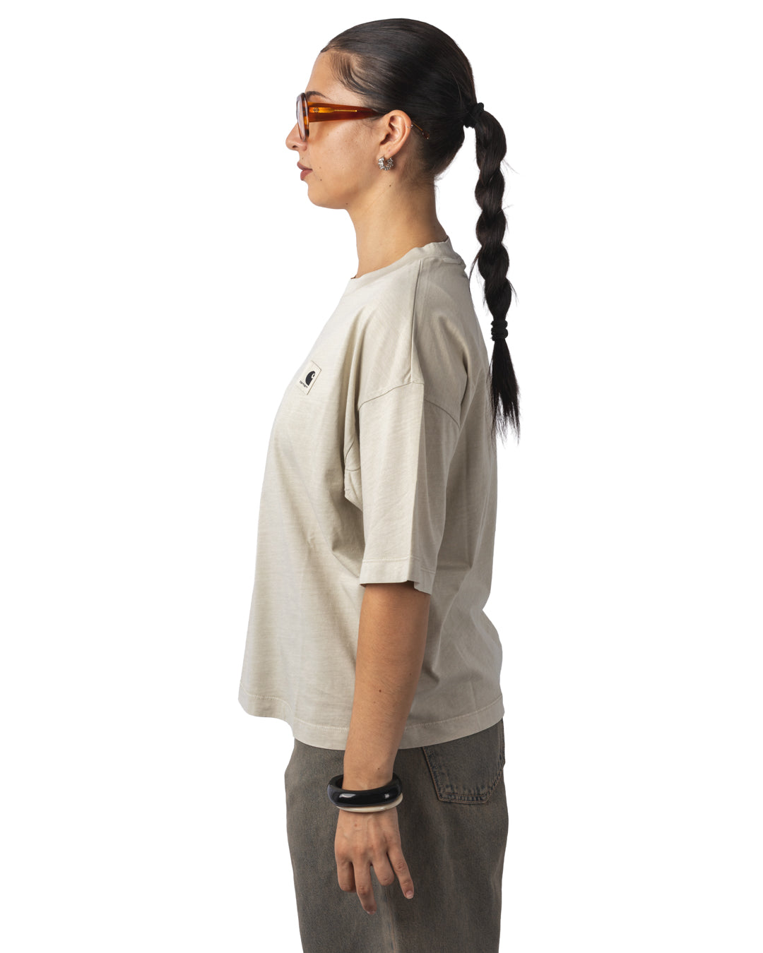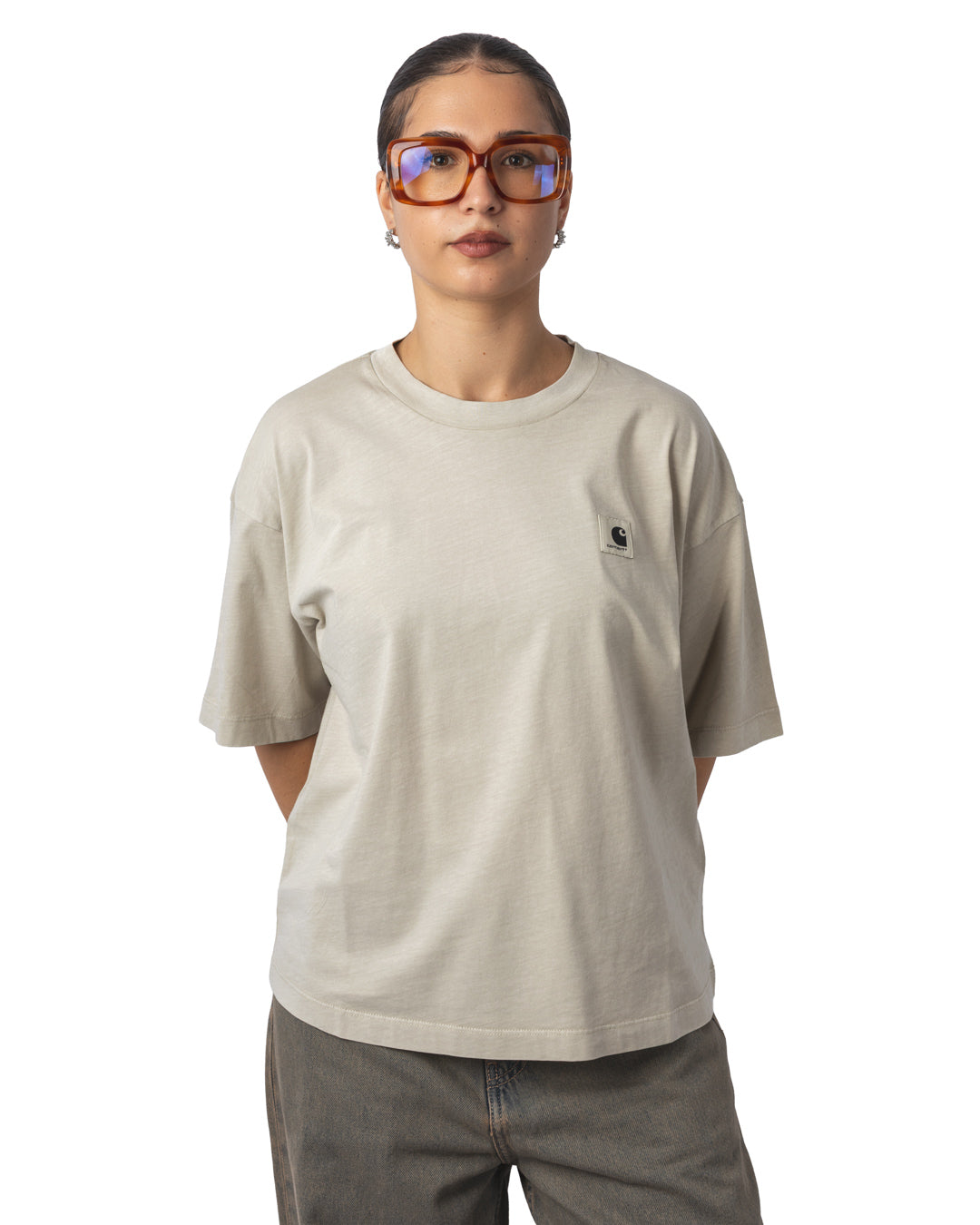 Le W' S/S Nelson T-Shirt est confectionné en jersey de coton épais, garantissant solidité et confort. Sa coupe ample et son col rond côtelé apportent un tombé décontracté. Il est orné d’un logo Carhartt brodé sur la poitrine, signature discrète et intemporelle.