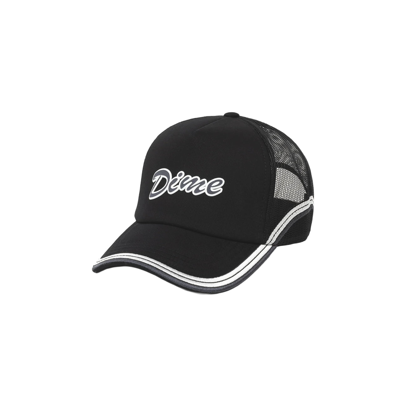 La Race Trucker Cap de Dime MTL est confectionnée avec un panneau avant structuré associé à un filet arrière respirant, offrant confort et ventilation au quotidien. Sa construction typique trucker assure une tenue stable, tandis que la visière incurvée protège efficacement. La fermeture ajustable permet un ajustement précis, complétée par des finitions soignées garantissant durabilité. Le design se distingue par un visuel graphique à l’avant, apportant une identité forte.