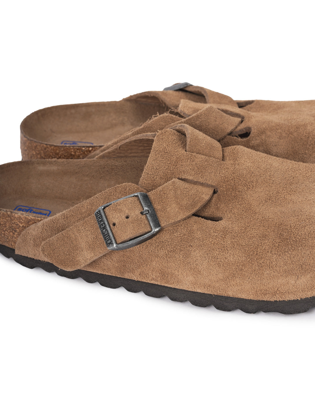 The Boston Suede Leather is a closed-toe clog crafted from high-quality suede with a velvety feel. This classic from the brand offers a comfortable, wraparound fit, with an adjustable buckle strap for a personalized fit. It sits on Birkenstock's iconic anatomical footbed, combining natural cork and latex for excellent arch support. The EVA outsole ensures flexibility and lightweight comfort.