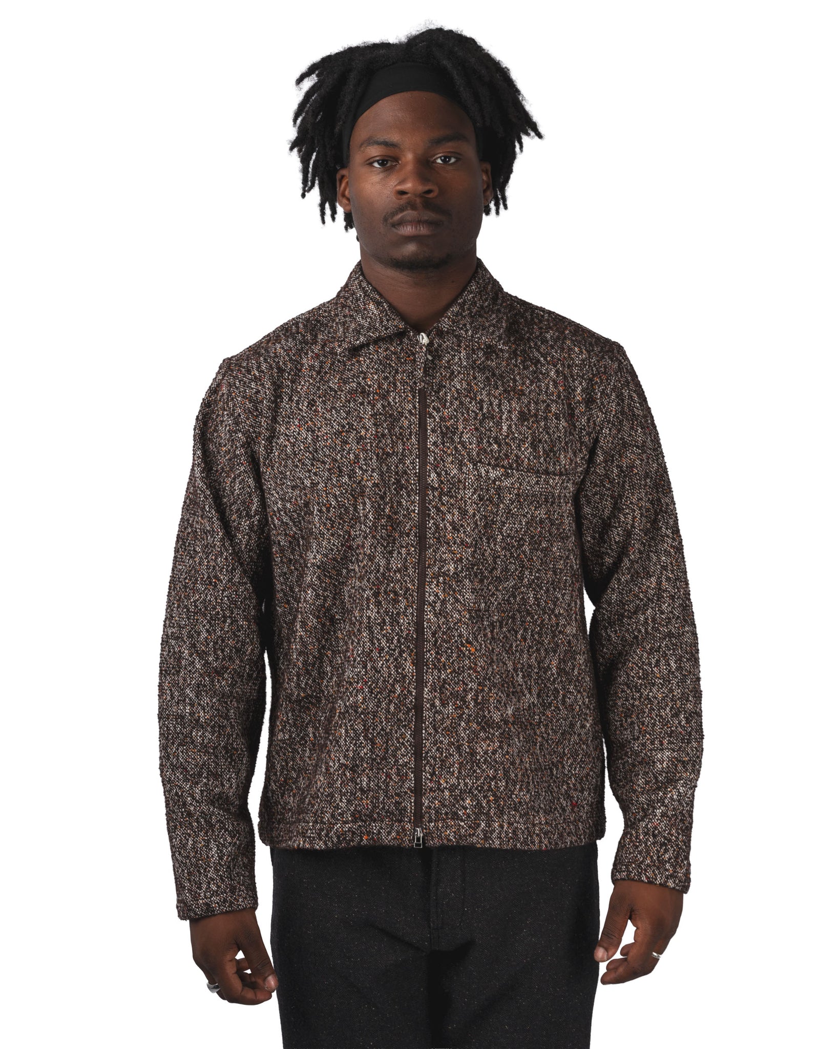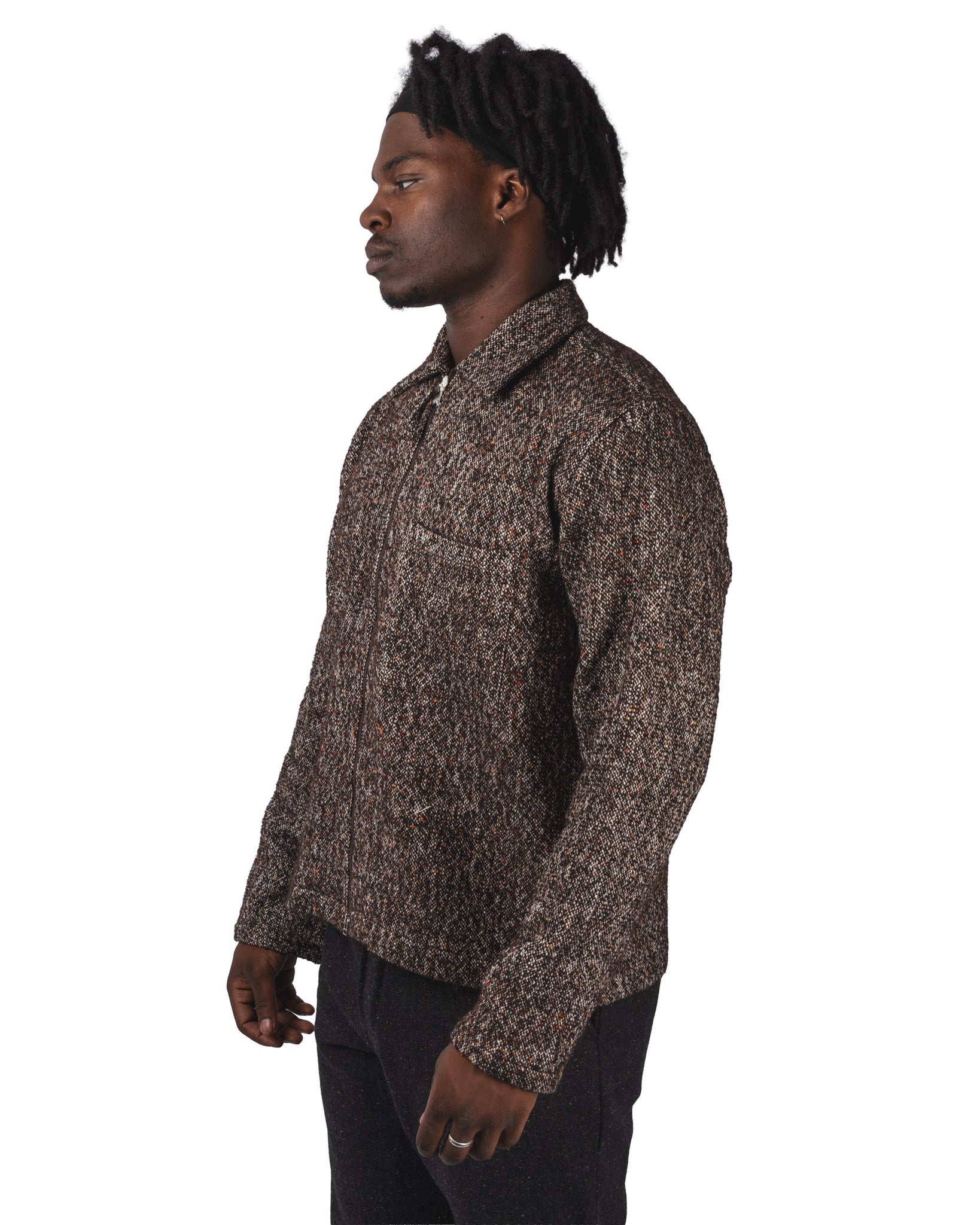 The Zip Sedona Tweed Shirt captures this spirit with a zip-up overshirt crafted from a textured tweed fabric. Its relaxed, straight fit makes it easy to layer, while the zipper closure and patch pockets add a utilitarian dimension. The dense, durable tweed gives this hybrid shirt warmth and character.